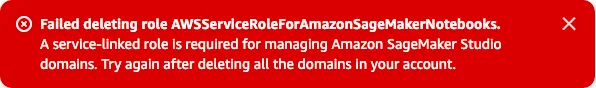 However, if I try to delete the service-linked role for SageMaker, this happens: