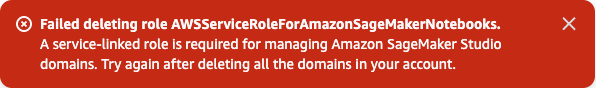 However, if I try to delete the service-linked role for SageMaker, this happens: